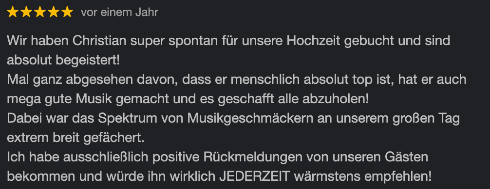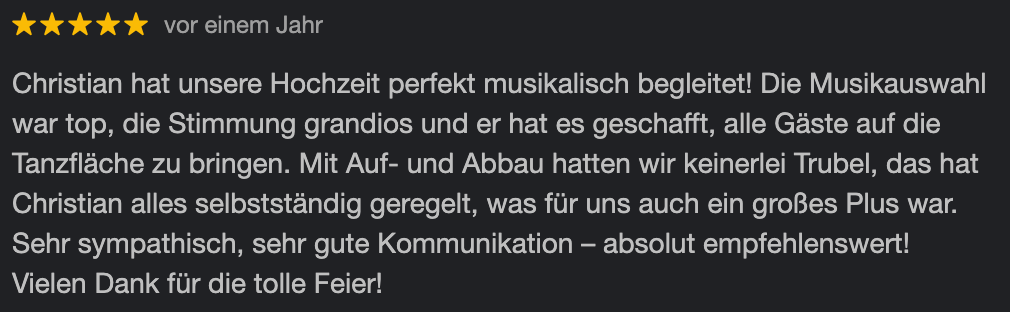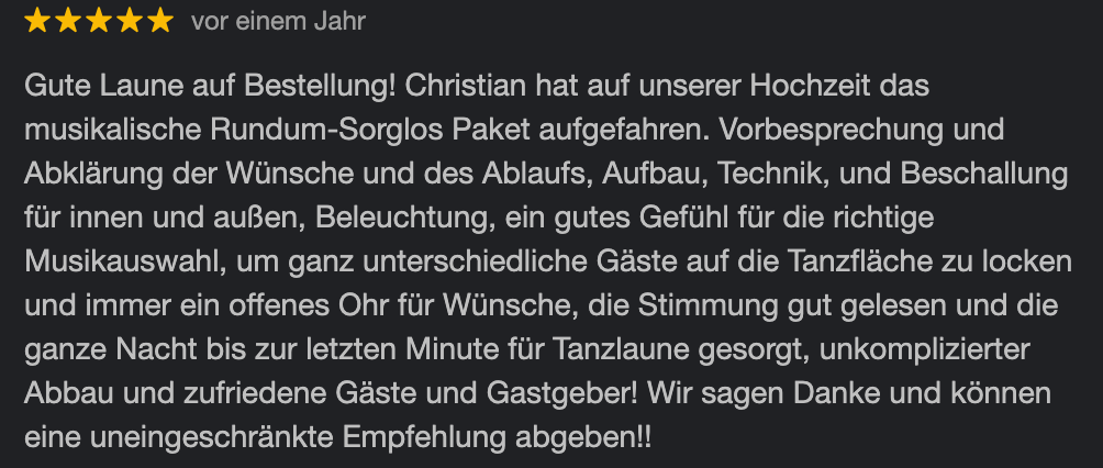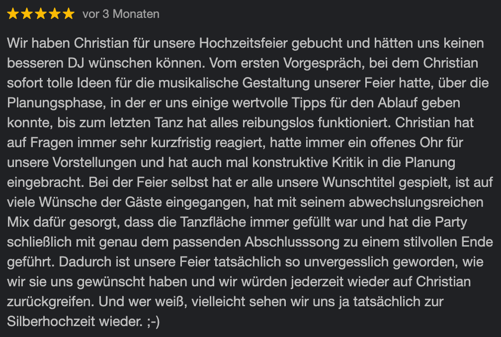 Keine Schlagerplaylist von der Stange, sondern anspruchsvolle Partymusik, individuell für eure Feier kuratiert.